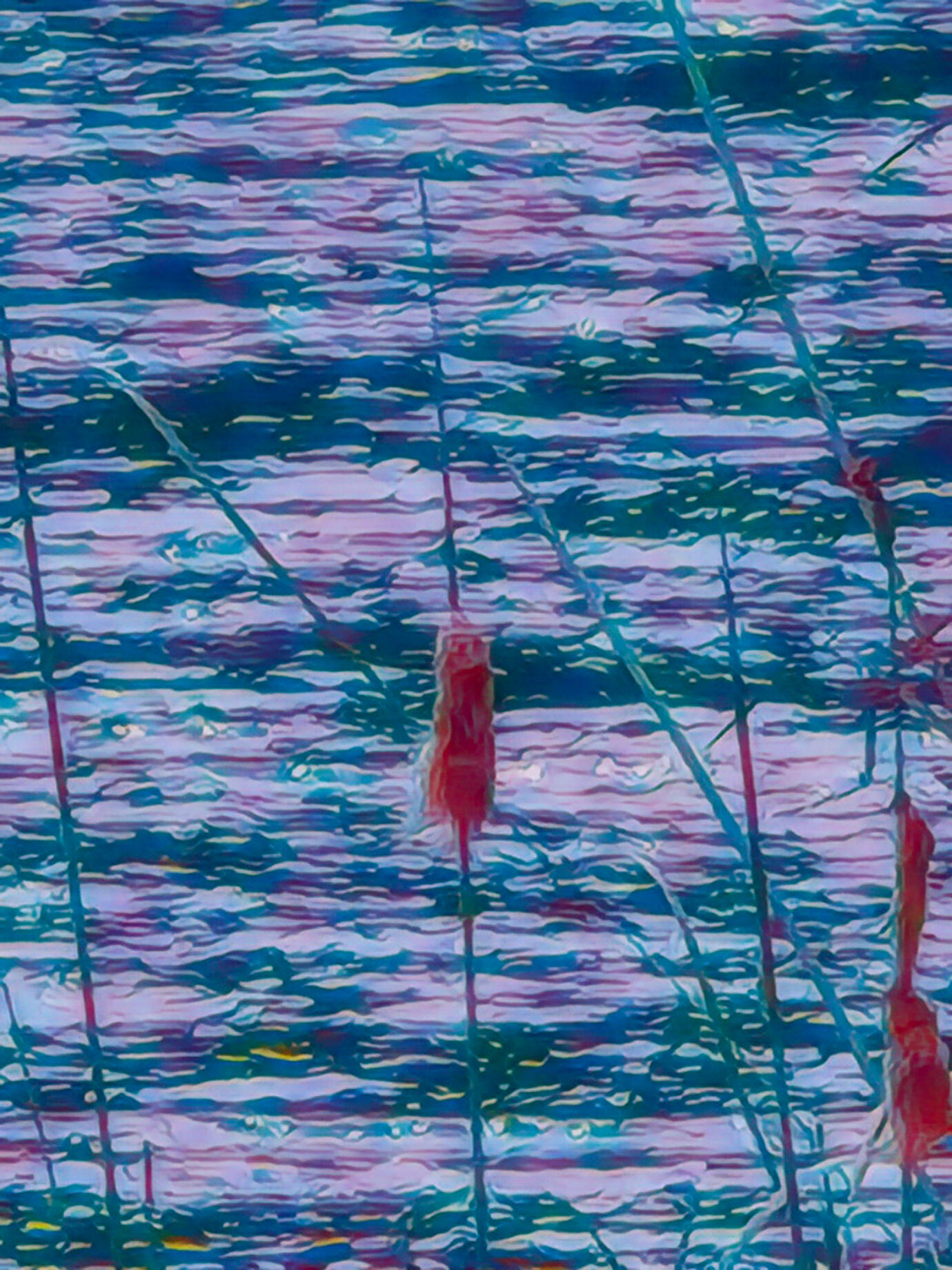 Unter meinen Füßen lief die Brühe zu einer Lache zusammen. Die Lache schwoll rasant an und bald fanden sich karussellgroße Stromschnellen darin, die dunkle Brühe ergoss sich im Schwall über ein talbreites Wehr und es breitete sich eine spiegelglatte Stauseeplatte aus. Der Wasserspiegel hob sich in einer Langsamkeit und senkte sich sodann wieder ab. Mir war, an dieser Stelle mochte ich übers Wasser gehen.